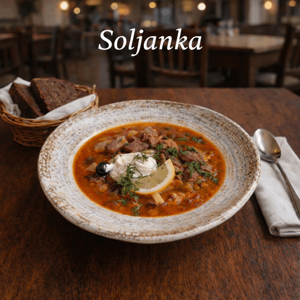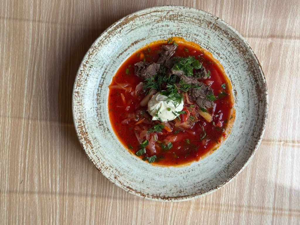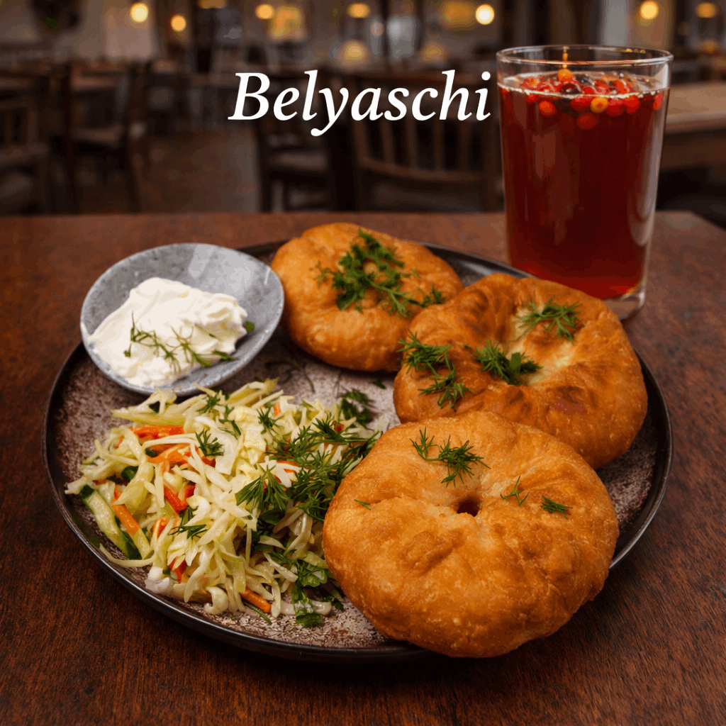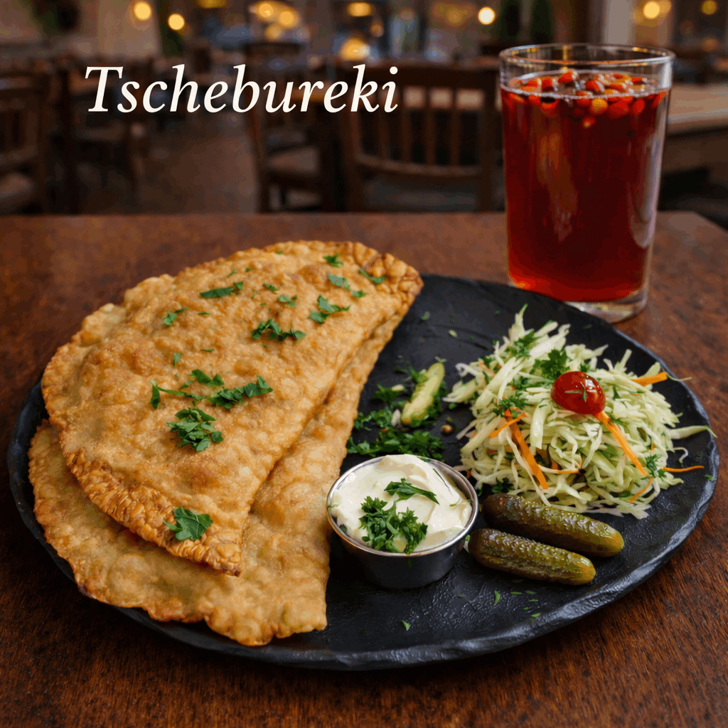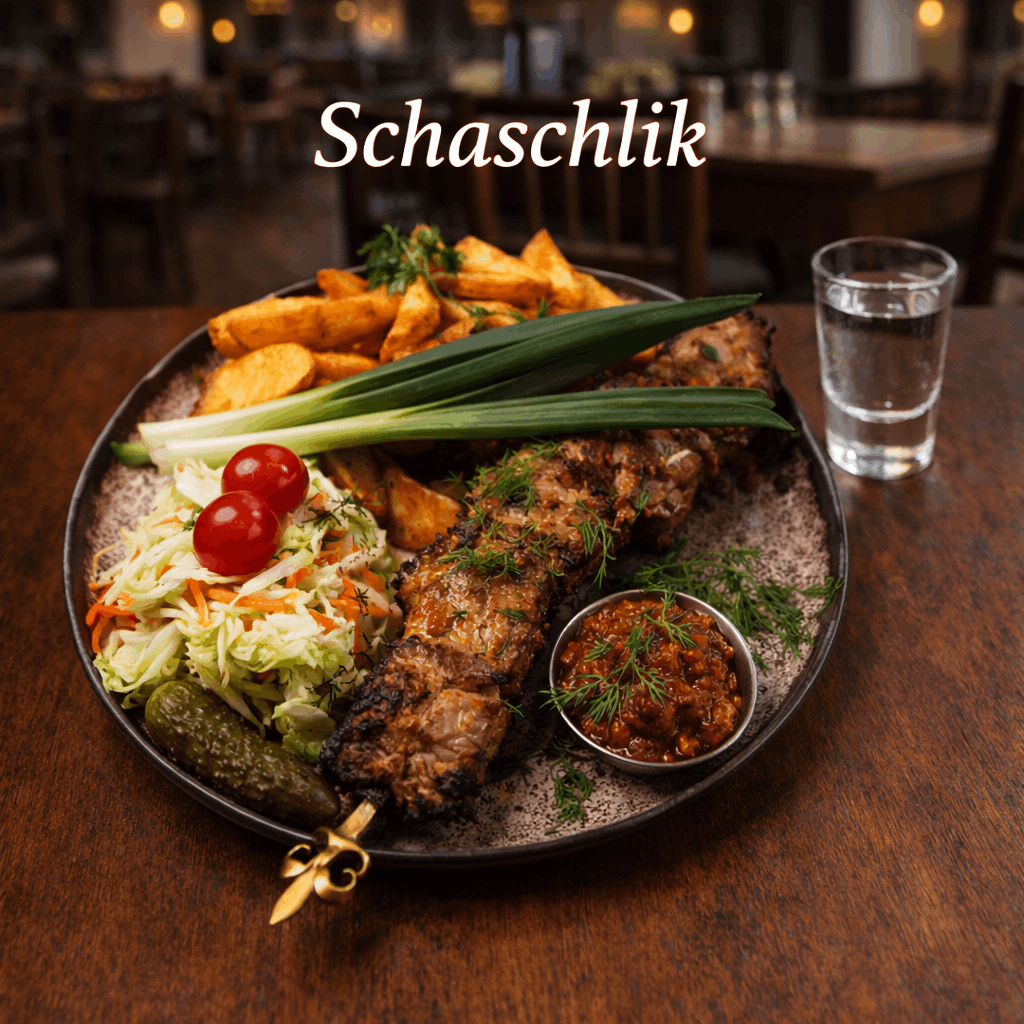Auf unserer Speisekarte finden Sie klassische Gerichte wie Borschtsch, Soljanka, Pelmeni, Wareniki, Tschebureki, Belyashi, Perepetchi, Boeuf Stroganoff, Schaschlik, Chatschapuri und viele weitere Spezialitäten.